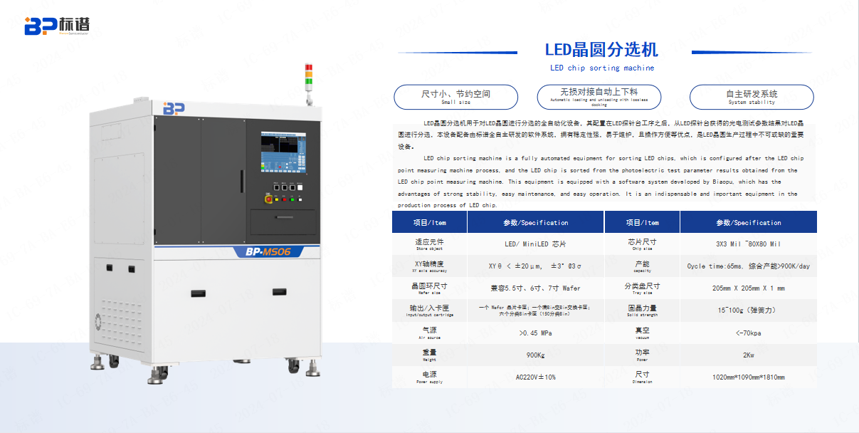 高精度检测:随着光学测量和机器视觉技术的不断进步,LED晶圆分选机的检测精度将进一步提高。通过采用更高分辨率的相机、更先进的图像处理算法和更精确的光学系统,分选机能够更准确地识别晶圆表面的微小缺陷和性能差异。