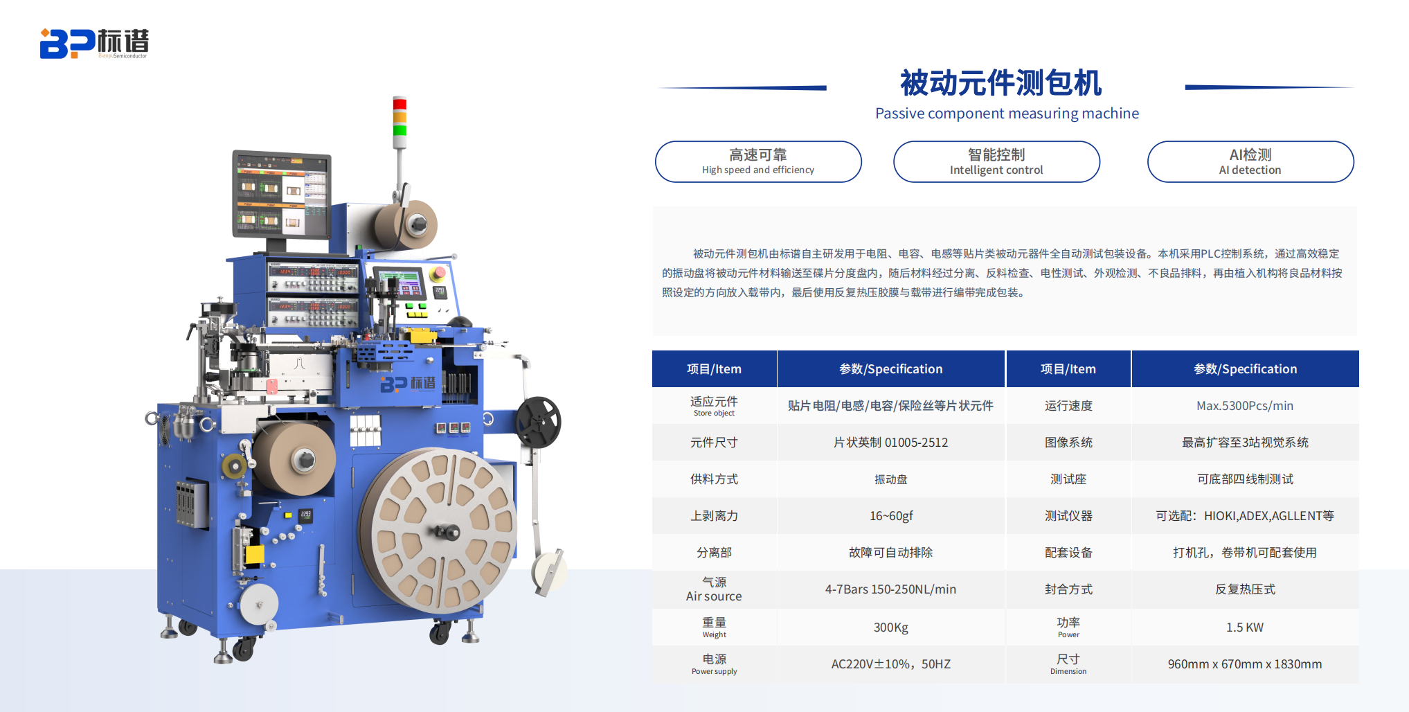 被动元件测包机在电子制造业中发挥着重要作用,通过高度自动化的测试与包装流程,提高了生产效率,保证了产品质量。