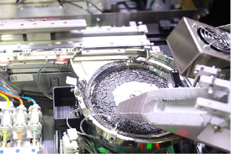 标谱自主研发的振动盘,不仅故障率低,而且可兼容不同型号材料上料。采用光电感应振动盘剩料情况,缺料时,通过电磁铁振动将产品振入振动盘中。