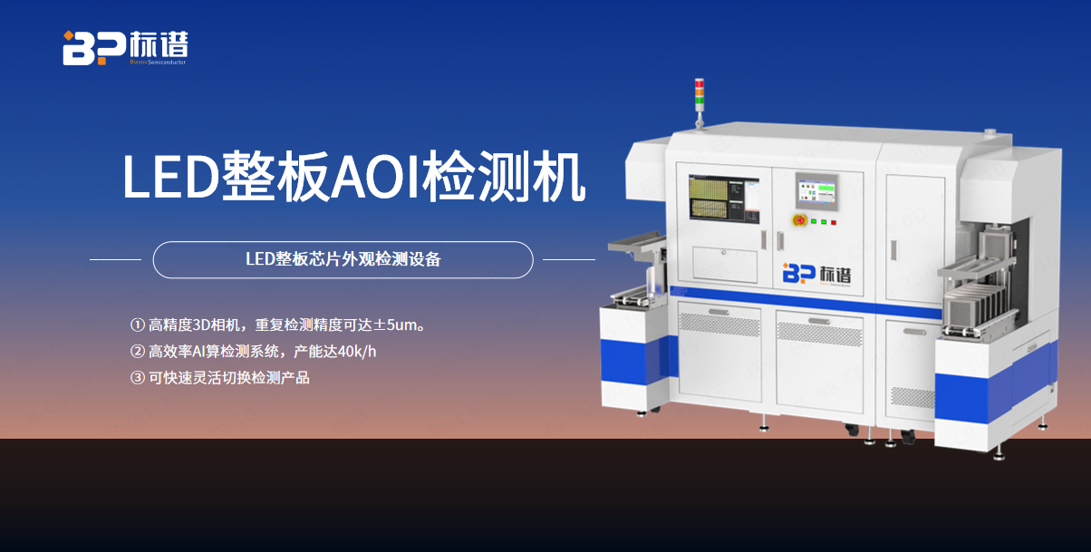用于整板LED产品外观自动化检测,由标谱半导体自主研发生产,能够对LED正反面外观缺陷进行一站式检测,可兼容60/72尺寸的LED封装支架,如1010,1212,1515,1921,2121,2525等均可适用。